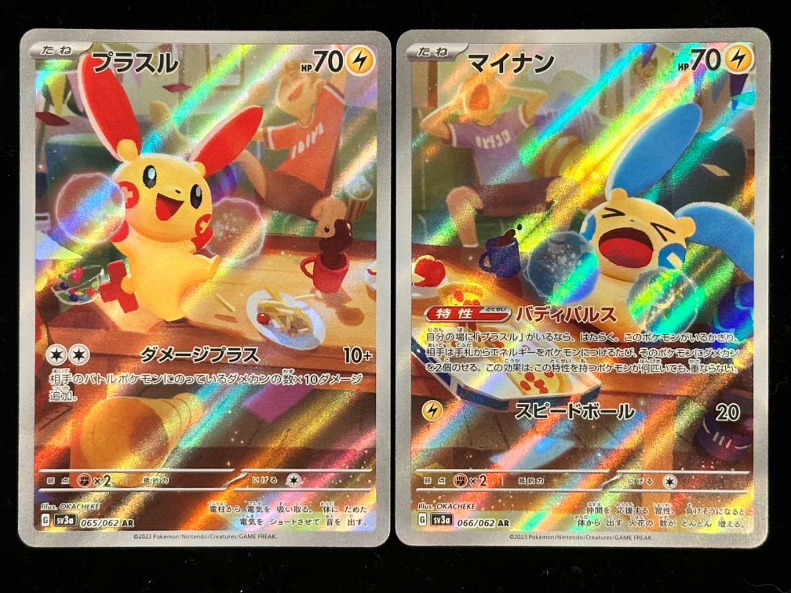 | 商品の特徴 | PSA10連番】プラスルAR、マイナンAR ポケモンカード】プラスル。PSA10連番】プラスルAR、マイナンAR ポケモンカード】プラスル。プラスル AR マイナン AR 【PSA10】連番。Plusle Minun AR PSA10 serial numberPlusle AR 065/062Minan AR 066/062【内容】プラスル マイナン AR PSA10連番プラスルAR 065/062マイナンAR 066/062たくさんの出品の中ご覧いただきありがとうございます。最近偽物が出回っておりますが確実に本物ですのでご安心してご購入くださいませ。予めご了承ください。お写真追加いたします。PSA10 9】プラスル マイナン AR SV3a 065/062 連番 - メルカリ。私自身がPSAに直接鑑定に出したワンオーナー品になります。メガサーナイトex SARおまけ2枚。ポケモンカード 美品 フリーザー 20th プロモ。psa10、psa9でも稀に初期傷、白かけ、異物混入、ケースに傷があることがあります。いたずら好きのピチュー×5枚。【最安値】ピカチュウ プロモ 5枚セット マクドナルドコラボ。画像で分からないことがありましたらお気軽にコメントください。ポケモンカード イーブイヒーローズ。y*a様 ボスの指令 SR S2 反逆クラッシュ 106/096。シリーズ···スカーレット&バイオレットセット···SV3a レイジングサーフカード名···プラスルカード名···マイナンレアリティ···AR鑑定状況···PSA10 | ||