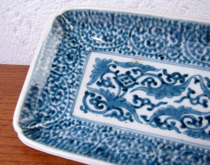 | メーカー | 古伊万里染付白抜き木瓜文長皿江戸時代成化年製 |