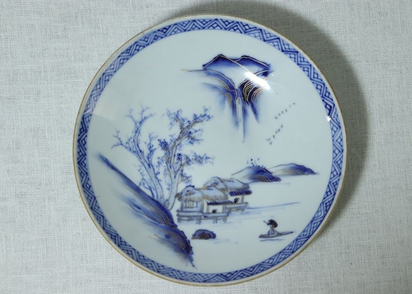 - 美術品・アンティーク・コレクション > 工芸品 > 江戸後期〜明治初期青九谷吉田屋手大皿木箱付直径26.3㎝タルニ東な7-0114⑤ 江戸後期〜明治初期青九谷吉田屋手大皿木箱付直径26.3㎝タルニ東な7