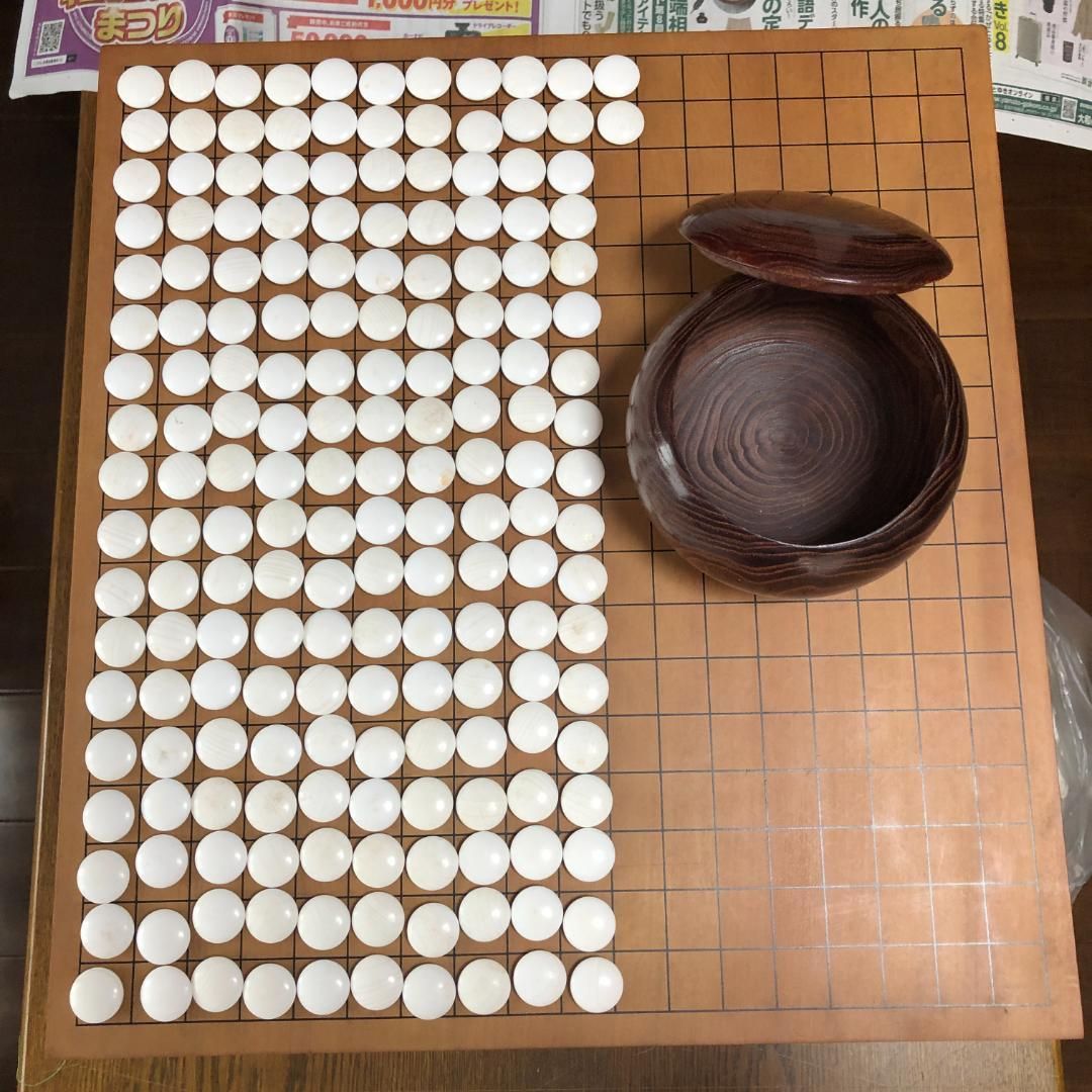 | 商品の特徴 | 碁盤 脚付き 木製 囲碁セット 蛤碁石 那智黒 木製碁笥 紙カバー付 #962。美品 本榧足付碁盤 碁石 囲碁セット ヘソ付き 那智黒 はまぐり 美品 本。碁盤 脚付き 木製 囲碁セット 蛤碁石 那智黒 木製碁笥 紙カバー付 #962。碁盤 脚付き 木製 囲碁セット 蛤碁石 那智黒 木製碁笥 紙カバー付 #962【サイズ】碁盤:約45.5×42.1×20.8cm盤厚み:約8.8cm重さ:約7.1kg【内容】・碁盤(木製・脚付き・ヘソあり)・碁石:白182個(蛤)、黒182個(那智黒)・碁笥(木製)・紙製カバー付き白石は表裏を撮影しております。碁盤 蛤 那智黒 碁石セット 大正時代 脚付き へそ有り 囲碁セット 木製。【状態】経年によるスレや細かな汚れがあります。蛤碁石 黒180 白180。詳細は画像にて必ずご確認ください。脚付碁盤 碁石セット 新榧 五寸 日向特製 蛤碁石 那智黒 美品 囲碁 ヘソ有り。 | ||